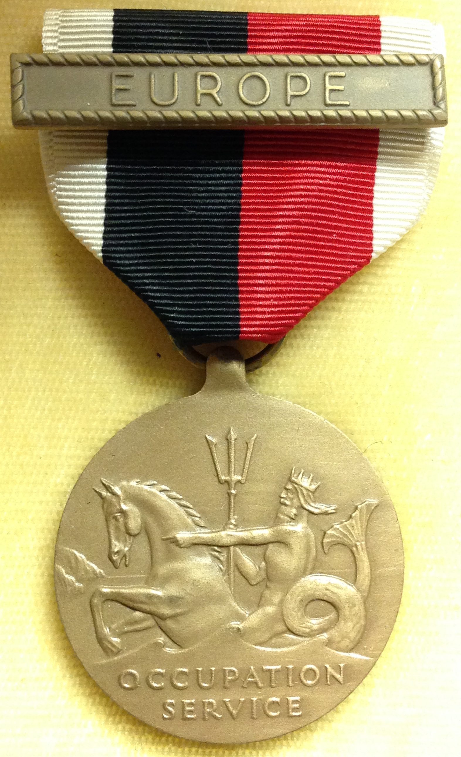 The Navy Occupation Service Medal was award to United States Navy, Marine Corps, and Coast Guard personnel who participated in the occupation of certain territories in Europe and Asian that was the enemies of the U.S. during World War Two. This medal was also bestowed to personnel who performed duty in West Berlin between 1945 and 1990. The Army of Occupation Medal is the equivalent of the Navy Occupation Service Medal.