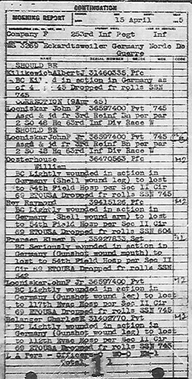 He entered the US Army on July 19, 1944 in Detroit Michigan. He served in D Company, 5th Training Bn, at Camp Wheeler Georgia. By December 1944 he was serving at Fort George Meade Maryland. He left the United States for Europe on Jan 6, 1945 and arrived in Europe on Jan 18, 1945. He was assigned as a replacement to 4th platoon Mortar section, F Company, 253rd Infantry Regiment63rd Infantry Division. He served in 2 Campaigns with Fox Company, including the company’s worst fighting of the war during the 1st 2 weeks of April 1945. He was one of the 63 men from Fox Company, that was not wounded during the Battle of Buchhof and Stine Am Kocher April 2- 12 1945. But unfortunately, he was severely wounded on April 15, 1945. He received shell fragments in the left leg and left arm. This resulted in him having his left leg amputated and his left arm was also permanently damaged by the shell fragments. He received his the Purple Heart Medal, on May 7, 1945 at the 67th General Hospital.